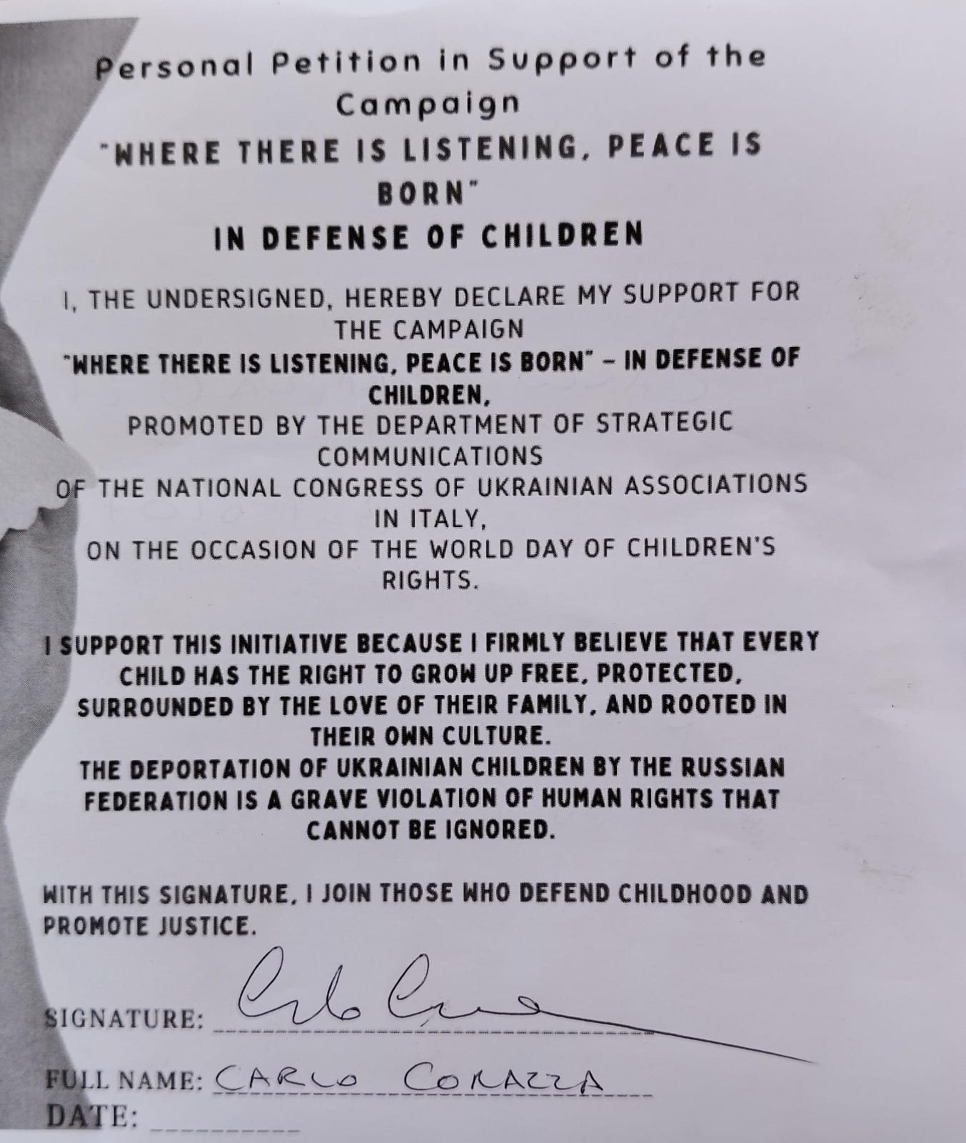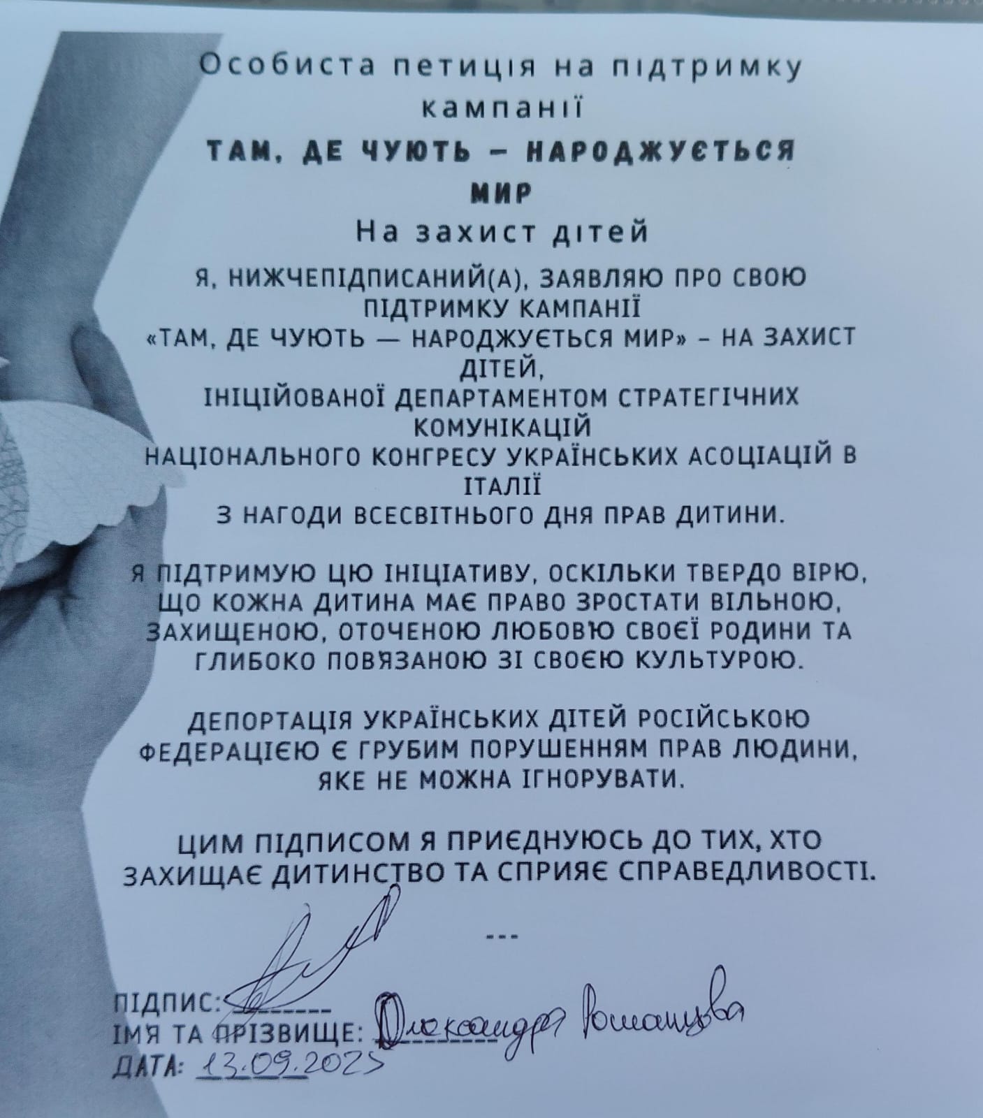 З початку повномасштабного вторгнення Росія депортувала 19.546 українських дітей, змінюючи їхні документи, розриваючи родинні зв’язки та нав’язуючи військове виховання. Уповноважений Верховної Ради України з прав людини Дмитро Лубінець назвав ці дії воєнним злочином і актом геноциду, адже примусове переміщення дітей з одного етнічного середовища в інше є визнаним елементом геноциду.
