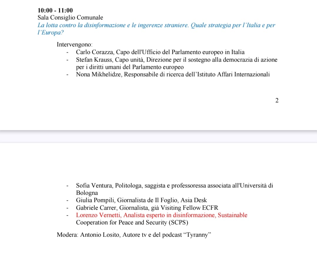 Серед організаторів заходу — віцепрезидентка Європейського парламенту Піна Пічiерно та керівник Офісу Європарламенту в Італії Карло Кораццо.