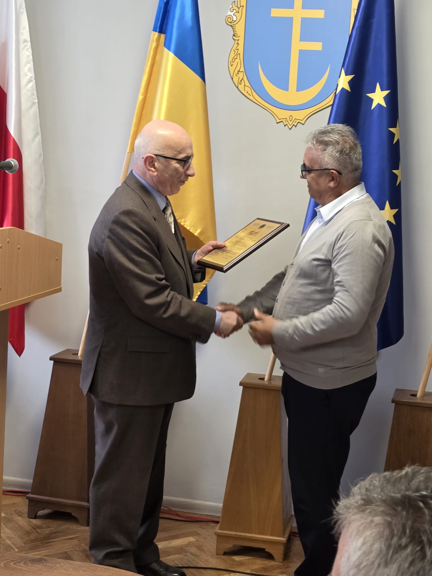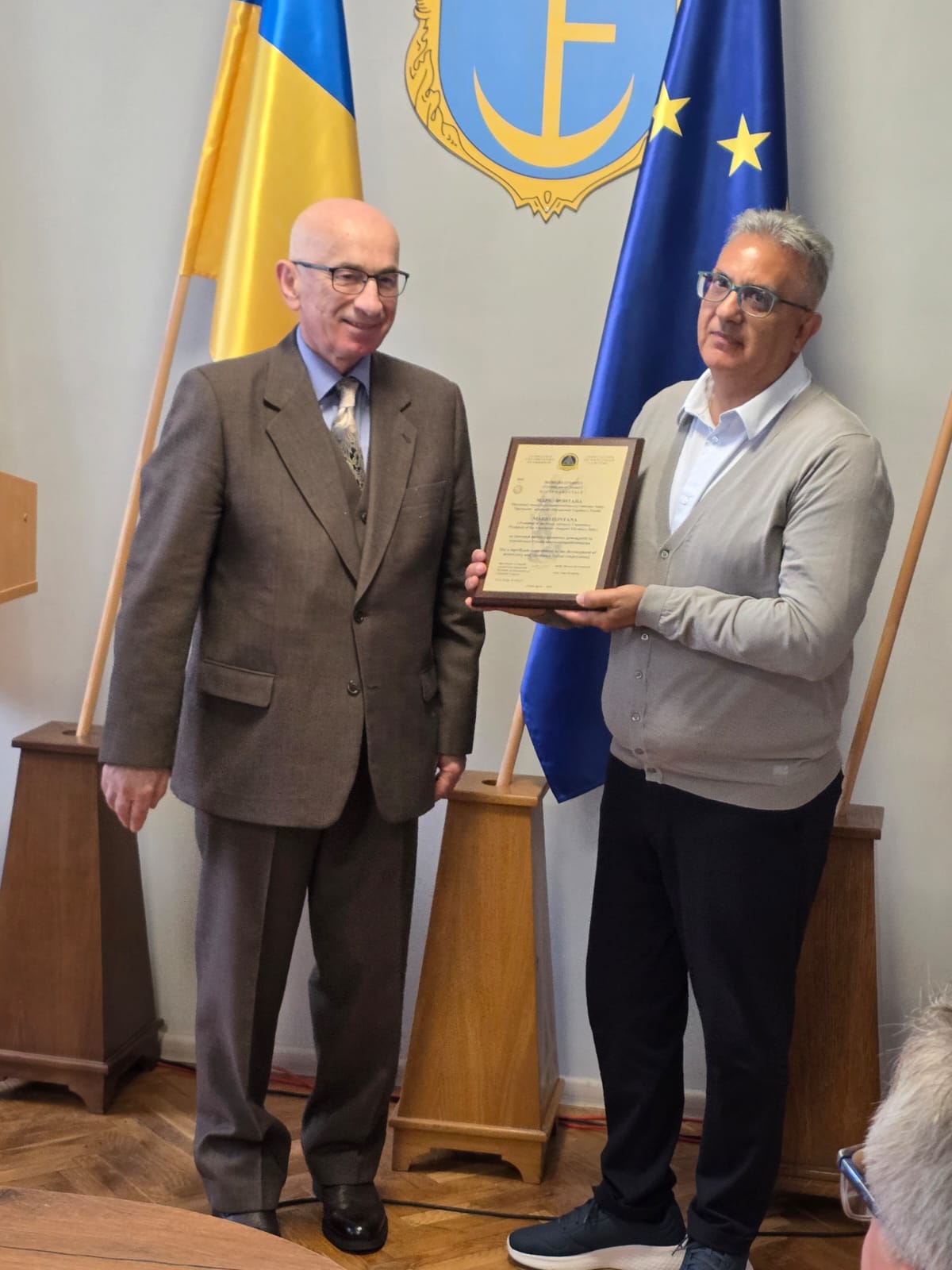 Під час зустрічі професор Василь Костицький вручив Маріо Фонтані високу відзнаку, присвячену його діяльності як президента асоціації “Sostieni Ucraina” та голови Консультативної ради з питань миру при муніципалітеті міста Трапані (Італія).