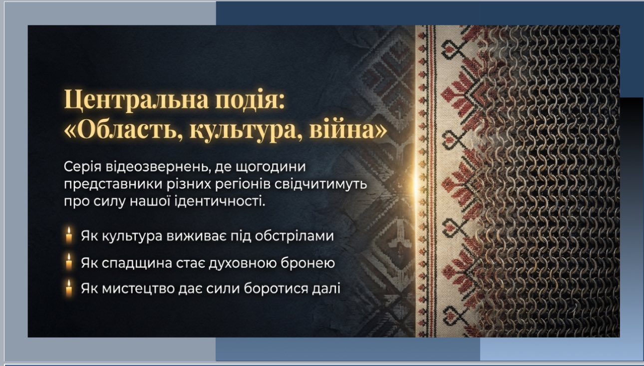 Протягом дня, з 09:00 до 21:00 (за київським часом), щогодини до спільного марафону долучалися представники всіх областей України🇺🇦 — від Автономної Республіки Крим до Чернігівщини. Кожна година ставала моментом спільної тиші, хвилиною пам’яті та живим свідченням того, що українська культура — незламна.
