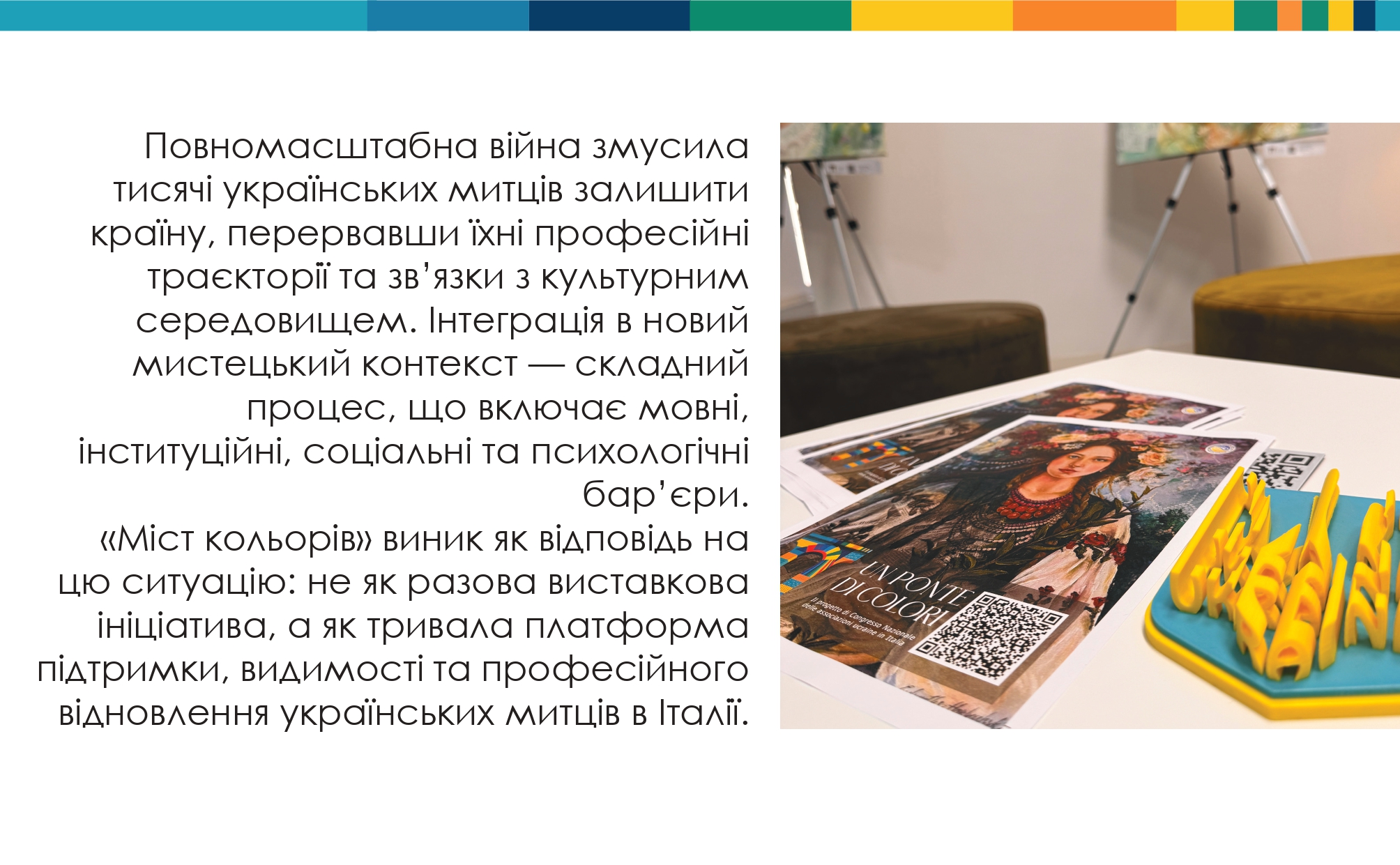 Особливу увагу буде приділено практичним механізмам культурної співпраці між Україною та Італією, а також інтеграції українського мистецтва в європейський простір.
