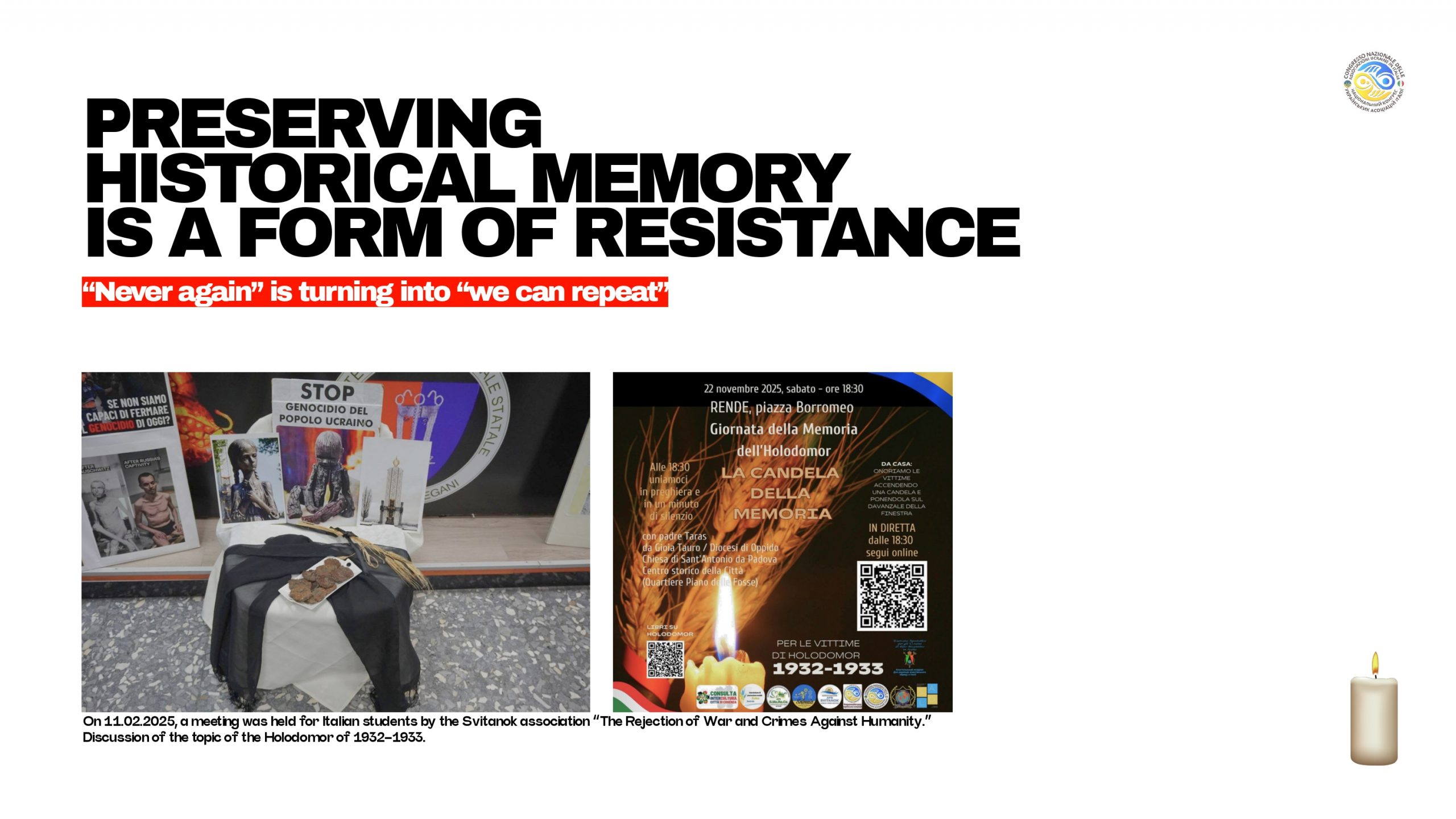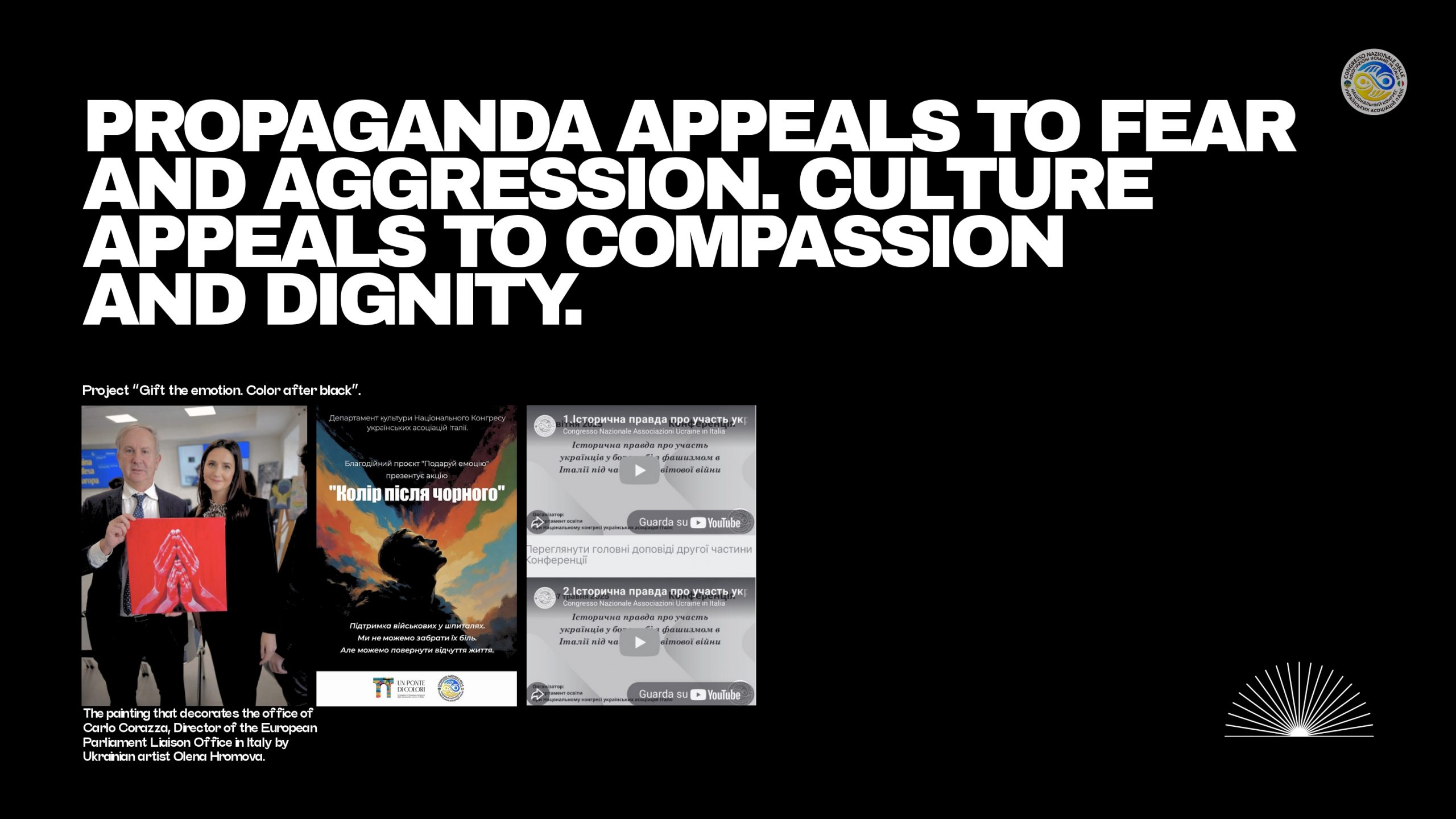 Організатором виступає Національний Конгрес українських асоціацій в Італії у співпраці з Офісом Європейського Парламенту в Італії.