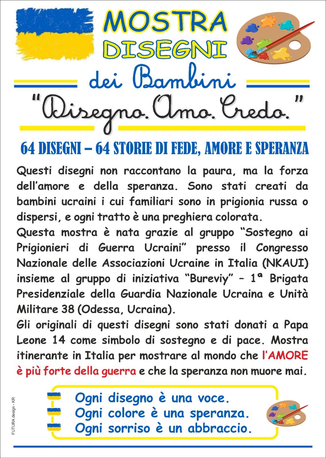 «Малюю. Люблю. Вірю» (Disegno. Amo. Credo).