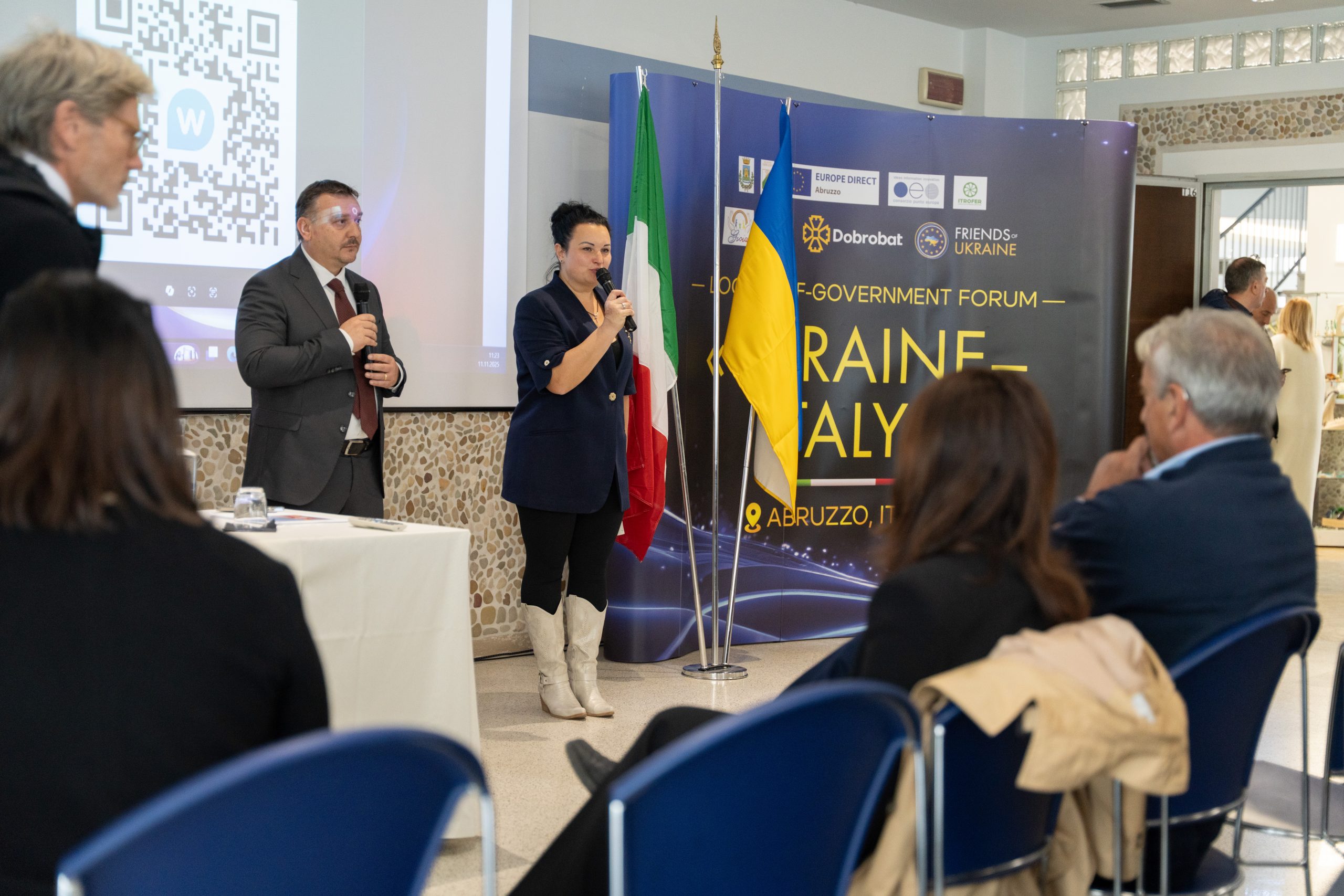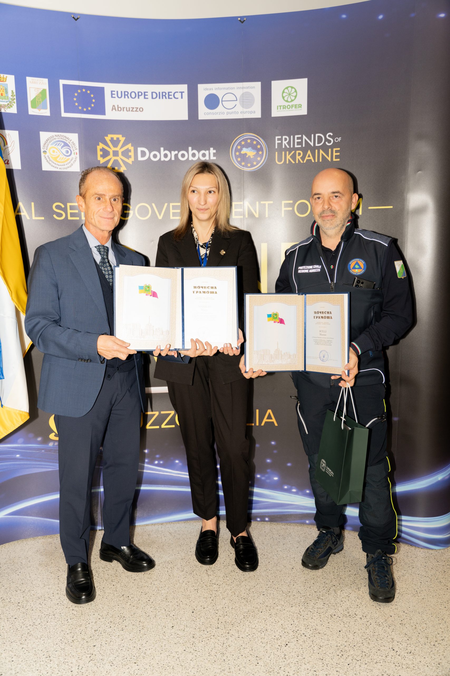 Міжнародний форум Абруццо-Україна був присвячений обміну між італійськими та українськими адміністраторами. Присутні, серед інших, д-р Стефано Марія Чанчотта, керівник кабінету президента регіону Абруццо, д-р Данієле Д’Амаріо, заступник секретаря президента регіональної ради з туризму, д-р Філіппо Луччі, керуючий директор Consorzio Punto Europa, та представники різних муніципалітетів Абруццо.