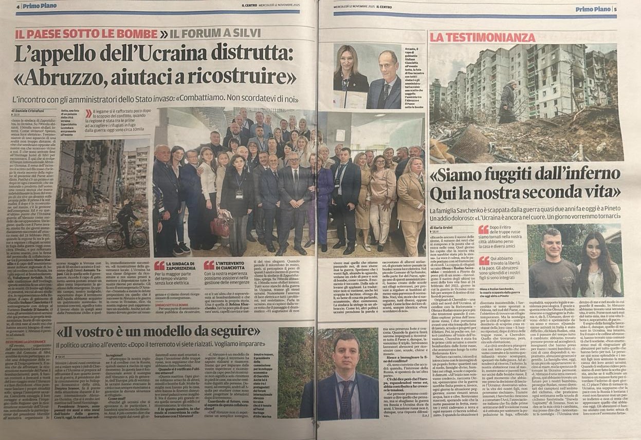11 листопада 2025 р. місто Сільві прийняло зустріч національного та міжнародного значення, ставши на один день символом діалогу, співпраці та солідарності між Італією та Україною. У готелі Heritage Hotel відбулися Міжнародний форум Абруццо-Україна організований ETS APS “GIOIA” та Департаментом міжнародної кооперації НКУАІ ( Національний онгрес українських аспоціацій Італії) за підтримки муніципалітету Сільві та партнерів.