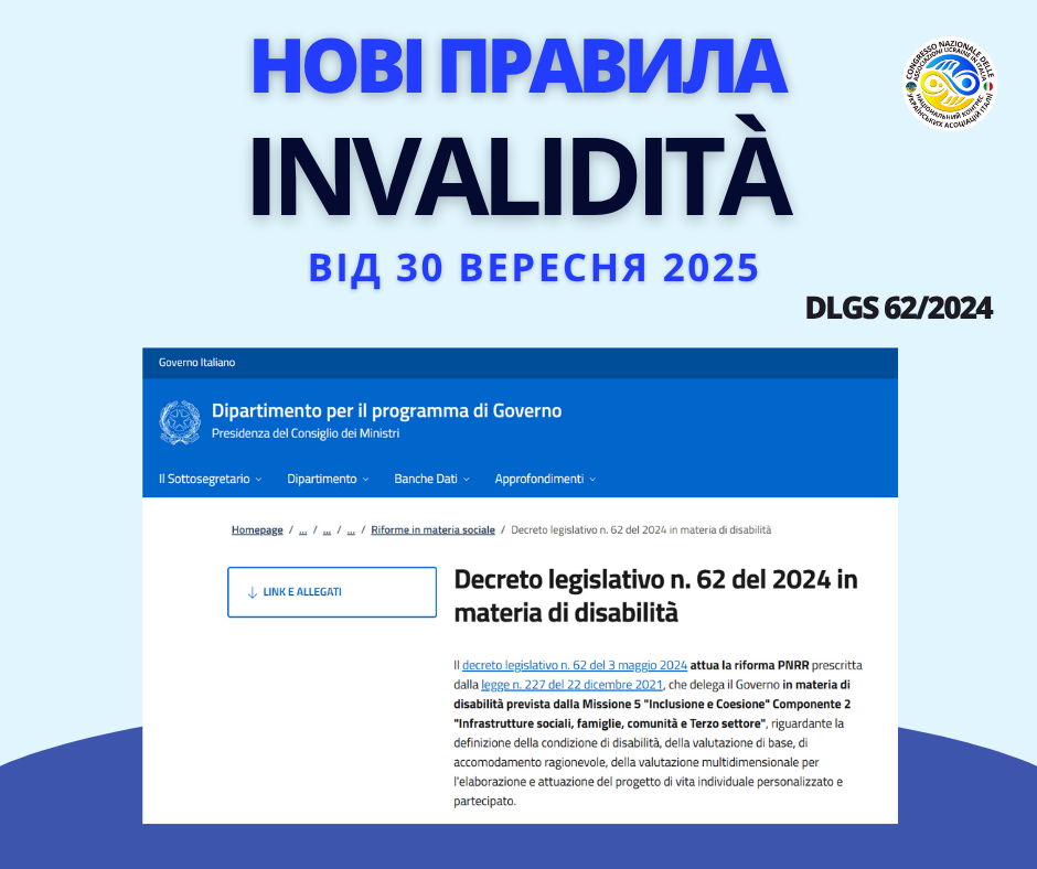 Реформа у сфері інвалідності, запроваджена законодавчим декретом №62/2024, затверджена Законом №15/2025.